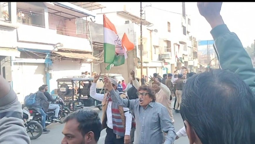 दोपहर लगभग 3:30 बजे कांग्रेस अध्यक्ष शांतिलाल वर्मा, पूर्व विधायक पारस सकलेचा, यास्मीन शेरनी, राजीव रावत, महेंद्र कटारिया, कमरुद्दीन कचवाया, शैलेन्द्र सिंह अठाना के नेतृत्व में कांग्रेस नेता काली पट्टी बांधकर आगे बढ़े। पुलिस द्वारा आगे जाने से रोके जाने पर दोनों पक्षों में धक्का-मुक्की हुई, जिससे मौके पर तनाव की स्थिति बन गई।